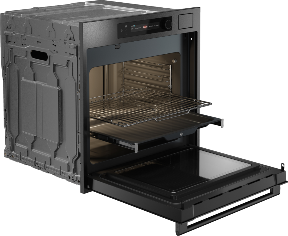 1 противень из нержавеющей стали без перфорации / 1 противень из нержавеющей стали с перфорацией / 1 решетка / 1 стеклянный противень / 2 универсальных противня / Термозонд