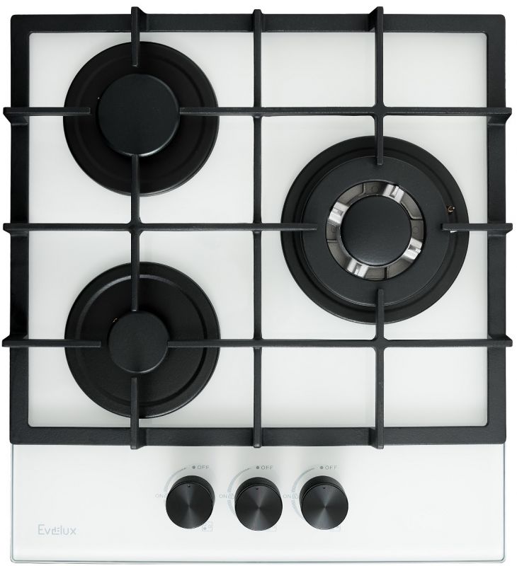 Газовые поверхности » Evelux HEG 425 WG Газовая поверхность из закалённого стекла, WOK-конфорка, ширина 45 см, газ контроль, эл. поджиг, цвет - Белый