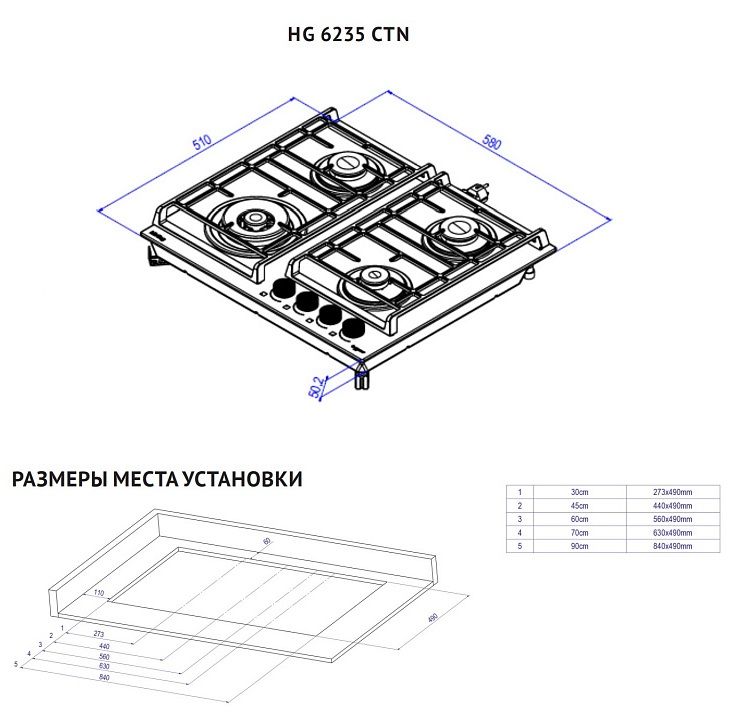 Размеры встраивания (ВхШхГ) (мм): 30x560х490