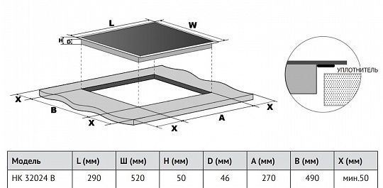 • Размеры встраивания (ВхШхГ) (мм): 50x270x490
