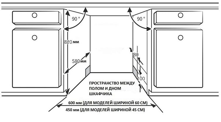 • Размеры встраивания (ВxШхГ) (мм): 820-870x450х570
