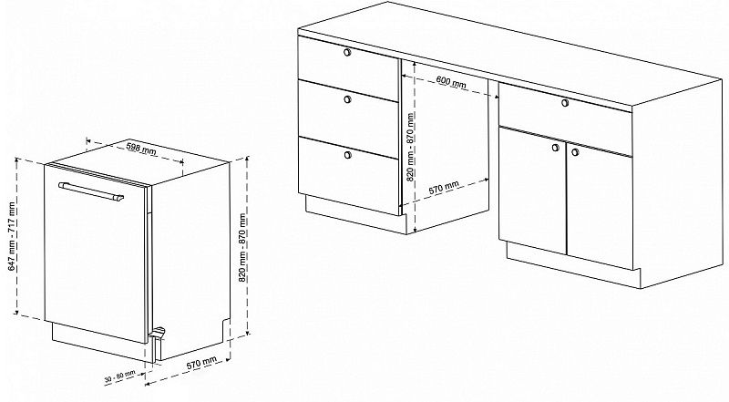 • Размеры встраивания (ВxШхГ) (мм): 820-870x600х570