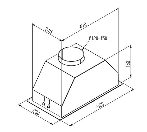 • Габариты (ВхШхГ) (мм): 153х520х280