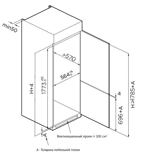• Размеры встраивания (ВхШхГ) (мм): 1789-1799х564х570