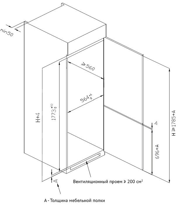 Размеры встраивания (ВхШхГ) (мм): 1789-1799х564х560