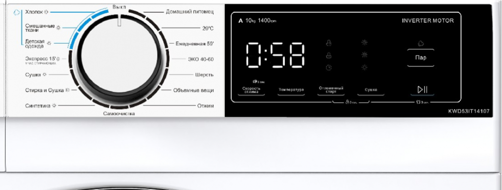 KORTING KWD 53IT14107 Стиральная машина С СУШКОЙ , Инверторный мотор, ГЛУБИНА 53,5 см, загрузка: стирка/сушка - 10/7 кг, 16 программ стирки, скорость отжима 1400 об/мин,