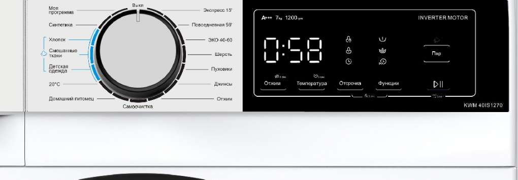 Стиральные машины отдельно стоящие Korting » KORTING KWM 40IS1270 Стиральная машина с Паром, ГЛУБИНА 45 см, загрузка 7 кг, скорость отжима 1200 об/мин, ИНВЕРТОРНЫЙ двигатель, электронное управление, LED индикация, Цифровой дисплей, 15 программ стирки