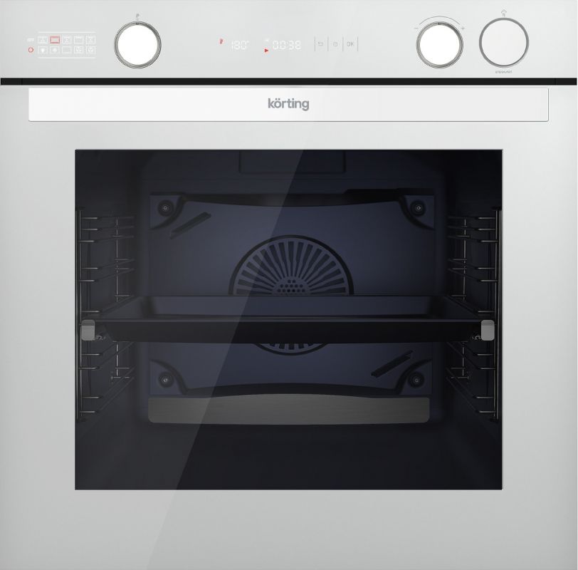 Электрические духовые шкафы Korting » KORTING OKB 61061 SQGW дизайн KITCHEN SELECTION. Духовой шкаф с Пароваркой, два дисплея + электронные регуляторы. Температуры: 50 – 300 ⁰С, 10 режимов, Увеличенный объем камеры 81 л. цвет - Белое стекло