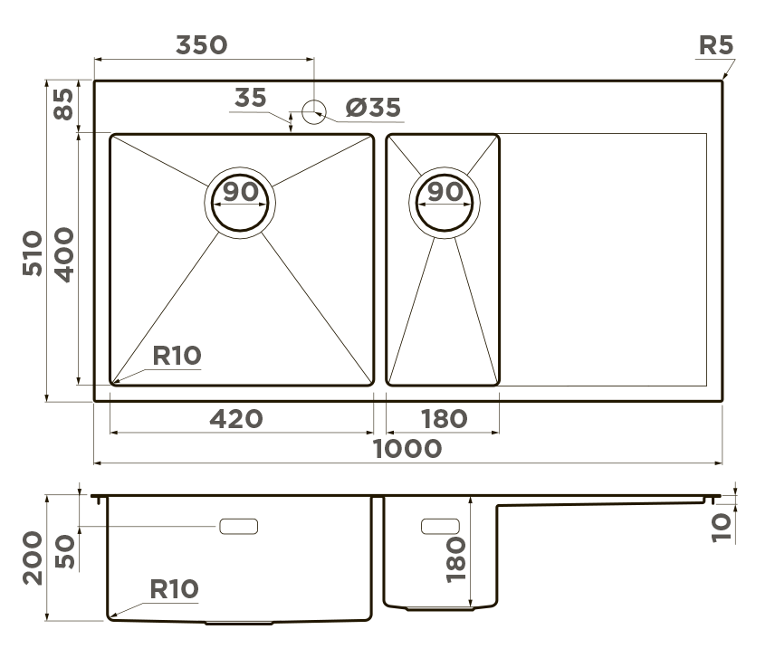 Кухонная мойка Omoikiri Akisame 100-2-IN-L Монтаж накладной / заподлицо