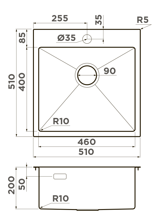 Мойка выполнена из японской высококачественной хромоникелевой нержавеющей стали с покрытием PVD.