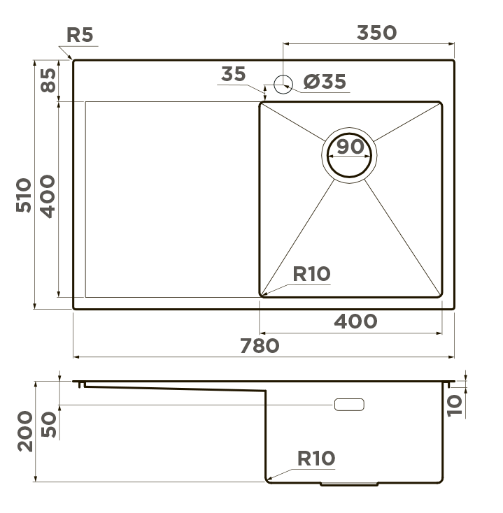Кухонная мойка Omoikiri Akisame 78-IN-R Чаша справа, Монтаж - заподлицо/накладная
