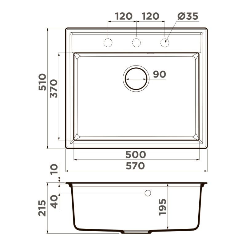 ширина 570 мм x длина 510 мм x глубина 195 мм