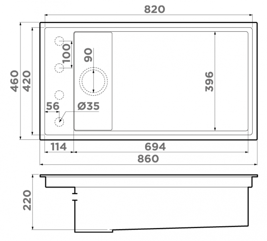 Размер чаши, мм: 694x396