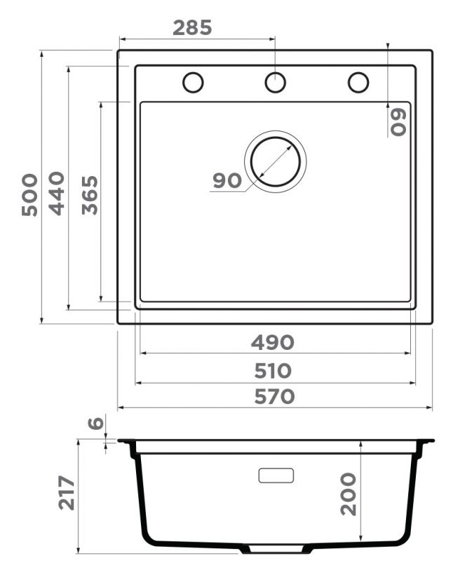 Кухонная мойка OMOIKIRI Sintesi 57-MO Материал Artceramic. Монтаж накладной
