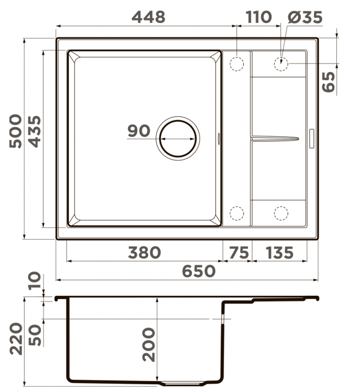 Кухонная мойка OMOIKIRI Sumi 65A-GB Материал Artceramic. Монтаж накладной