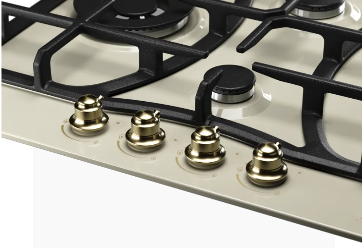 Kuppersberg FS 610 C Bronze Газовая варочная поверхность, конфорка WOK, металл, цвет Бежевый/ручки цвета бронзы