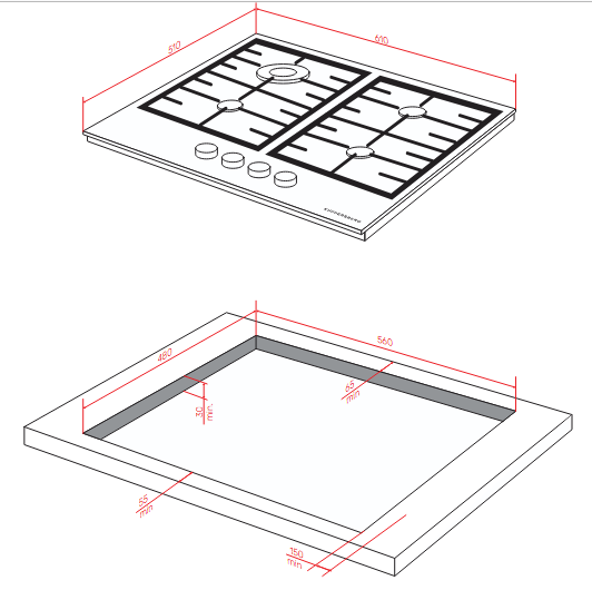 • Размеры ниши для встраивания (ШхГ) 560х480