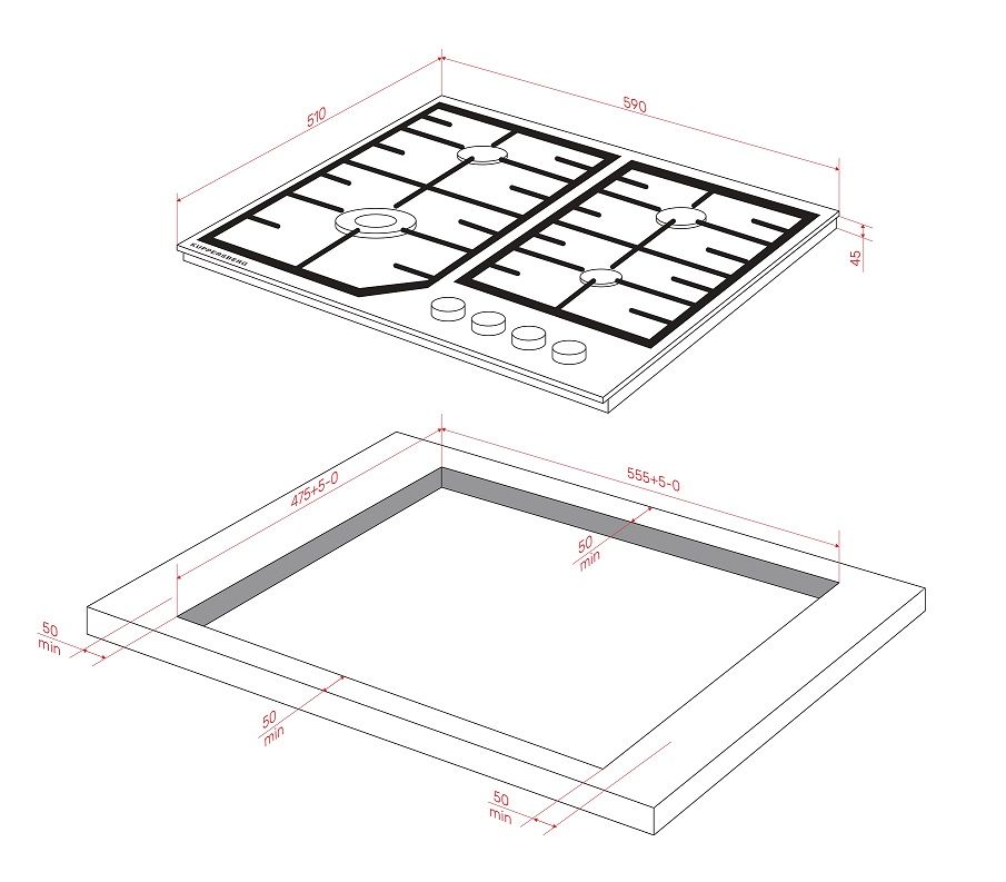 KUPPERSBERG FS 66 B Газовая поверхность, Эмаль, ширина 60 см, 4 газовые конфорки, WOK конфорка, автоподжиг, газ-контроль, чугунные решетки, цвет чёрный Отзывы:
