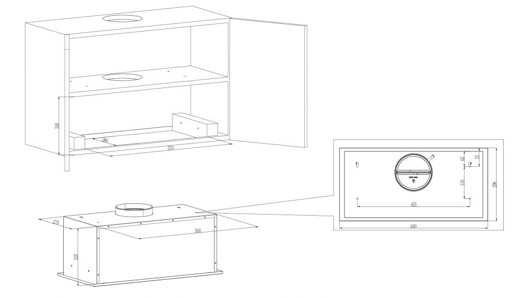 Kuppersberg INPUSH 60 X Встраиваемый вытяжной блок, ширина 52 см. Производительность 780 м3/час