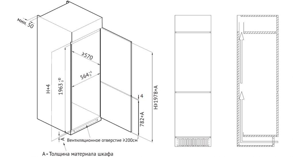 • Размер ниши для встраивания (ШхВхГ), мм 564,6х1964х570