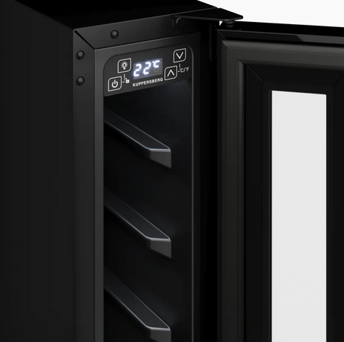 Винные холодильники » KUPPERSBERG RBW 15 Встраиваемый винный шкаф, 20 л. Температуры: 5-20°C, Кол-во полок: 7, одна температурных зона, Ширина, см 15 Высота, см 87 Глубина, см 51,5