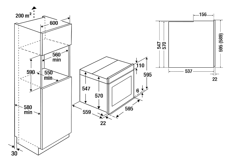 | Размеры ниши для встраивания,мм | 590х560х550 |
