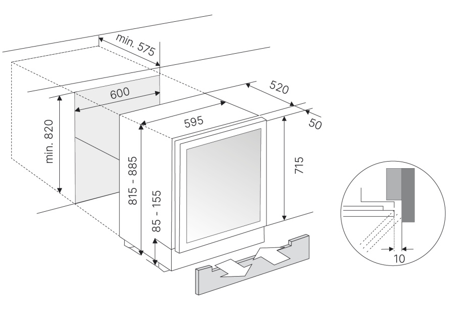 | Размеры ниши для встраивания,мм | 820х600х575 |