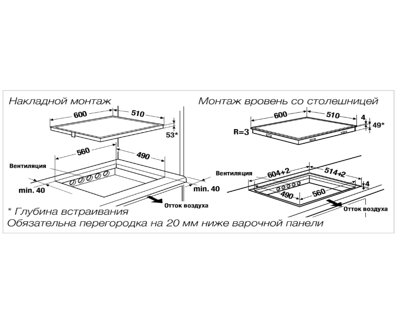 | Вентиляция под столешницей | Да |