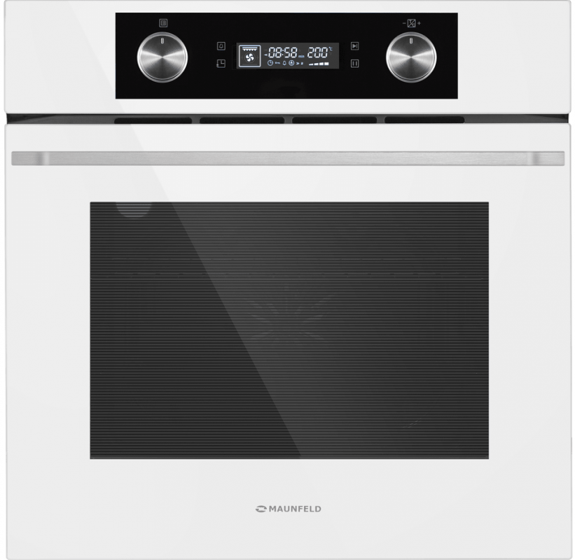 Духовые шкафы (современный дизайн) » MAUNFELD AEOH60102W Шкаф духовой электрический, поворотные ручки уиапливаемые + сенсорное упр., 10 режимов, цвет - белый