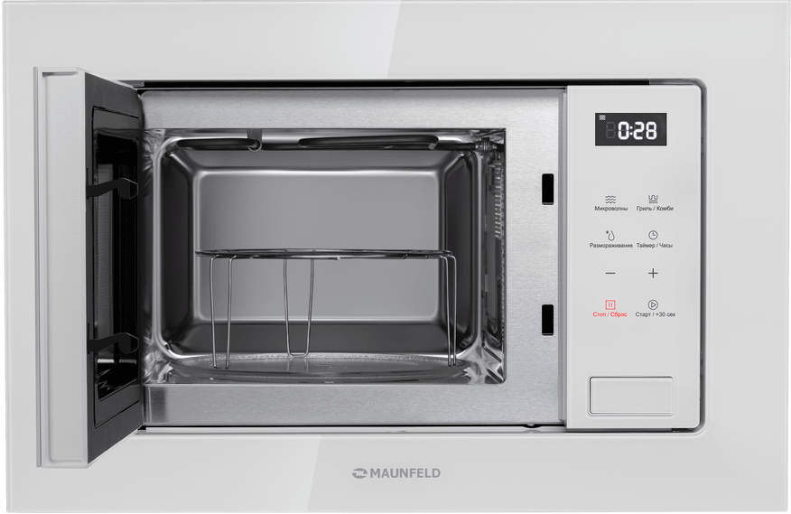 Микроволновые печи встраиваемые, высотой до 38 см » MAUNFELD MBMO820SGW10 Микроволновая печь 20 литров, сенсорное управление,теновый гриль, цвет - белый