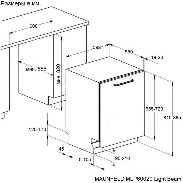 Посудомоечные машины встраиваемые 60 см » MAUNFELD MLP60020 Посудомоечная машина 60 см. 6 программ, Луч на полу, конденсационная сушка, 1/2 загрузки