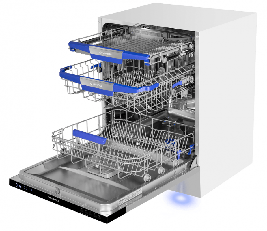 Посудомоечная машина MAUNFELD MLP60230 Light Beam Inverter Wi-Fii оснащена дисплеем и удобной системой управления. Благодаря функции Wi Fi, возможен удаленный запуск машины через приложение на смартфоне. Также есть индикаторы наличия ополаскивателя, соли и времени до окончания программы. Машина имеет класс энергопотребления A+++, что говорит о ее высокой энергоэффективности. Уровень шума составляет всего 44 дБ, что делает ее одной из самых тихих моделей на рынке. Внутренний резервуар выполнен из нержавеющей стали, что обеспечивает его долговечность и устойчивость к коррозии.