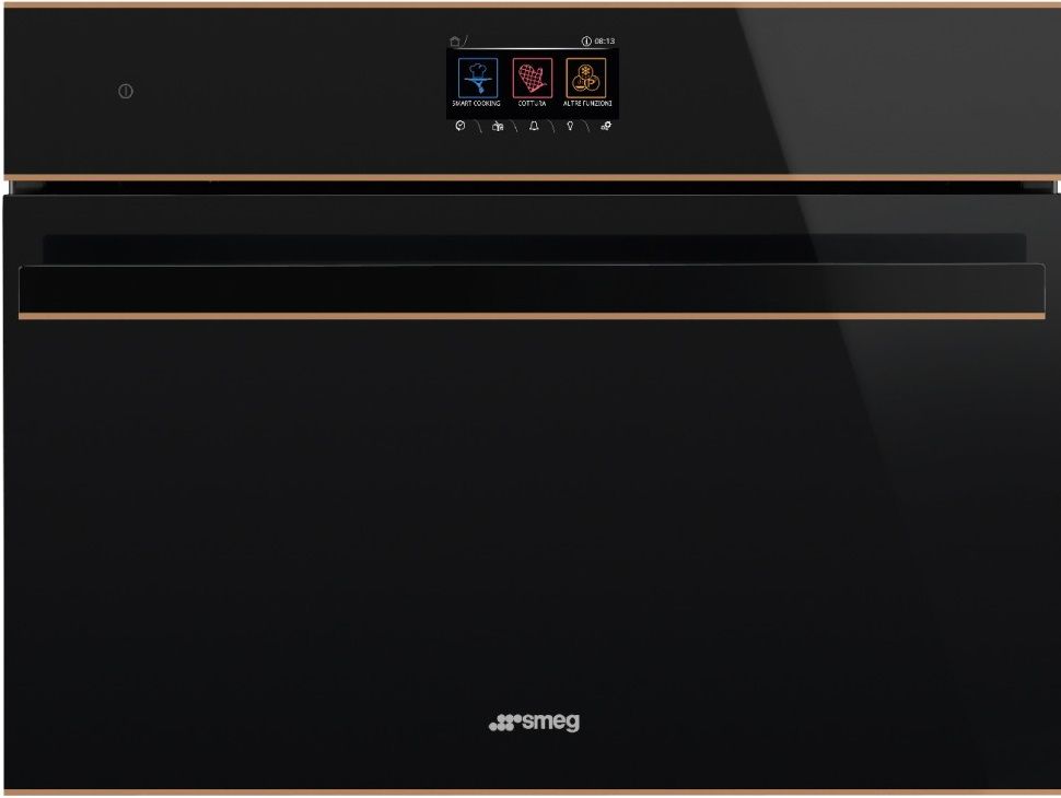 SMEG » Серия Dolce Stil Novo » Компактные приборы » Smeg SO4604S4PNR Серия Dolce Stil Novo Компактный многофункциональный духовой шкаф, комбинированный с паром, 60 см, высота 45 см, 20 функций, чёрное стекло Eclipse, медный профиль.