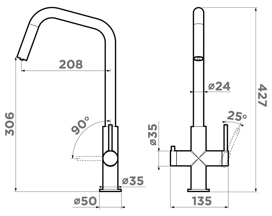 Новый стандарт смесителя: ультратонкий корпус, идеальная отзывчивость ручки в 25 мм картридже, уникальная U-shape форма излива и возможность подключить фильтр.