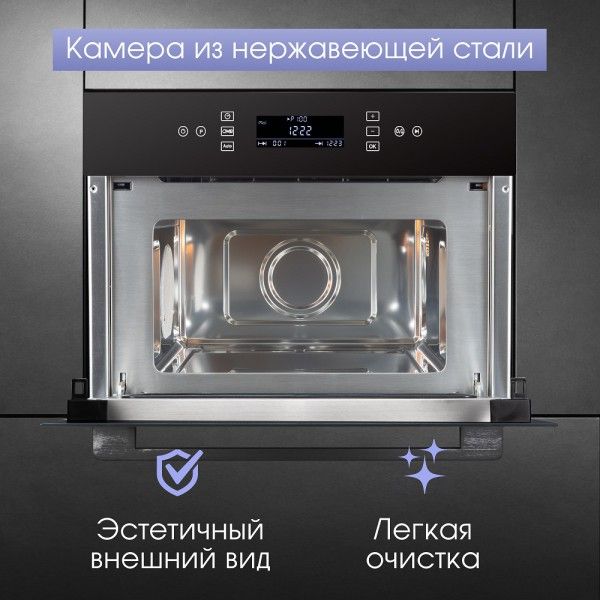 Встраиваемая микроволновая печь Zigmund Shtain BMO 22 B — идеальное сочетание стиля и функциональности. Чёрная с чёрной фурнитурой, она станет ярким акцентом на вашей кухне. Фасад из закалённого стекла добавляет элегантности, а сенсорное управление делает использование максимально удобным.