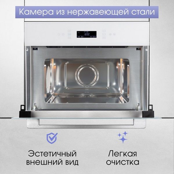 Холодный фронт и блокировка управления от детей гарантируют безопасность использования. Камера выполнена из нержавеющей стали, что гарантирует долговечность и простоту ухода.