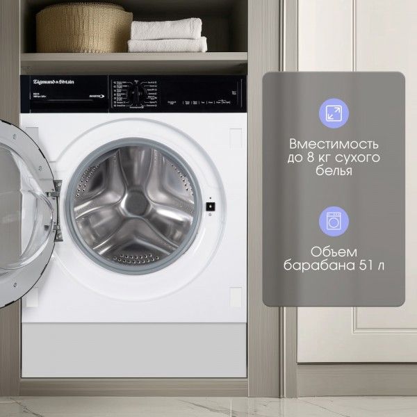 Zigmund & Shtain BWM 05 Встраиваемая стиральная машина с Сушкой. ИНВЕРТОРНЫЙ мотор, Сенсорное упр., Загрузка до 8 кг, сушка - 5 кг.,макс. отжим 1400 об., пр-во Турция Отзывы:
