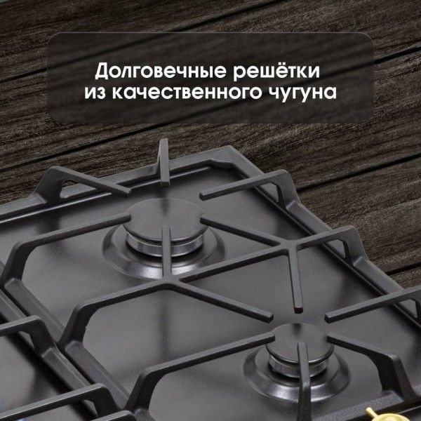 Zigmund & Shtain G 19.6 B Газовая варочная поверхность. ширина - 60 см. Цвет - антрацит, регуляторы - золото