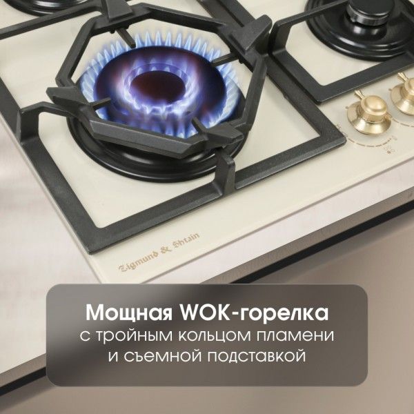 Zigmund & Shtain M 26.6 X Газовая варочная поверхность из закаленного стекла, цвет - Бежевый, ручки золото