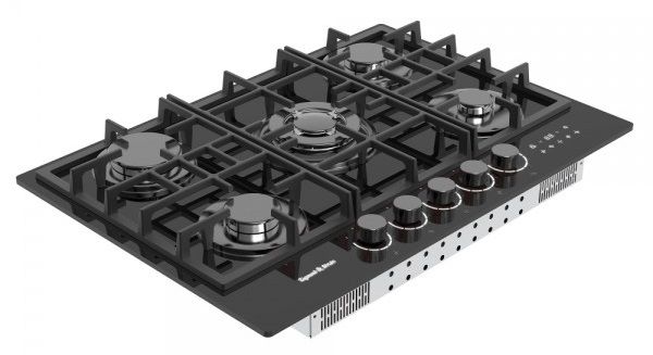 Zigmund & Shtain M 29.7 B Газовая варочная поверхность, LED индикация перключателей, 5 конфорок, Таймер, блокировка, Ширина - 70 см. Закалённое стекло Цвет - чёрный.